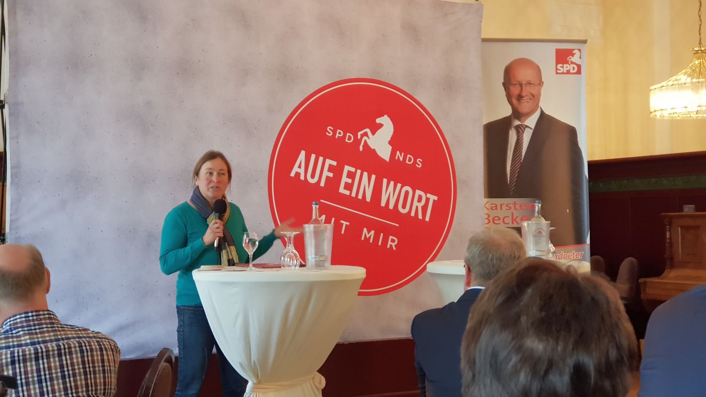 Auf Einladung von Karsten Becker (SPD) sprach unsere Direktkandidatin Dr. Imke Hennemann-Kreikenbohm zum Thema „Innere Sicherheit in Niedersachsen“. Die SPD Veranstaltung fand am 13. Oktober 2017 im Ratskeller Bückeburg statt. In der Veranstaltung mit Boris Pistorius und Karten Becker stellte Imke Hennemann-Kreikenbohm klar, dass die Sicherheit, aber auch die Freiheit der Bürgerinnen und Bürger in Niedersachsen für die grüne Politik von herausragender Bedeutung ist.